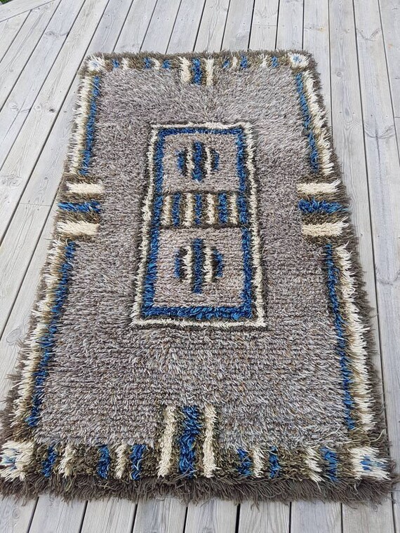 Amazing Grey Blue Retro Modern Midcentury Wool Rug Carpet Teppich