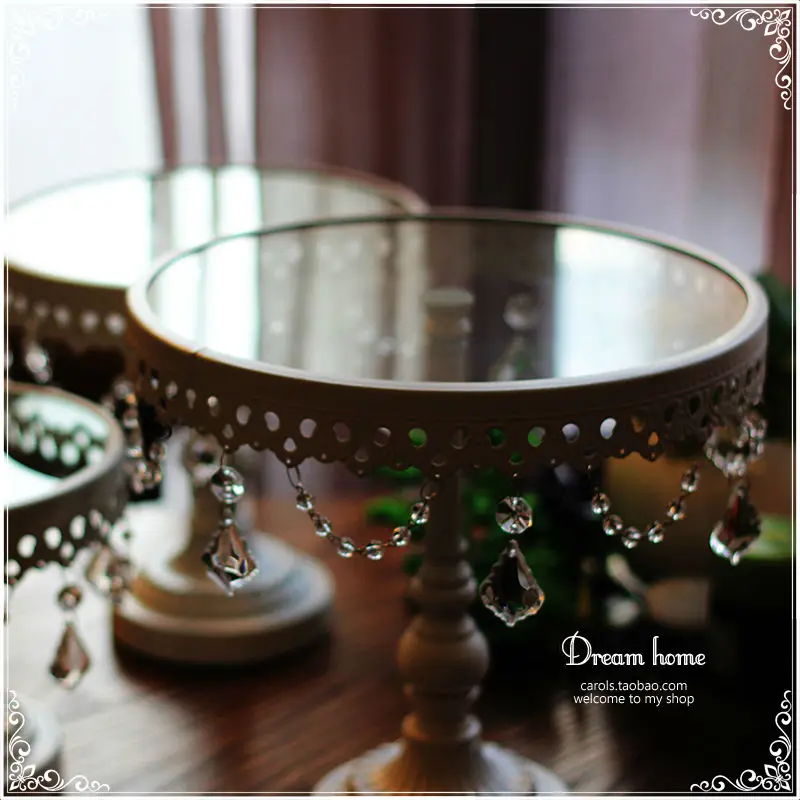 Modern Putih Cake Logam Berdiri Rak Cermin Kaca Tray Kue