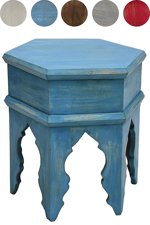 Marokkanischer Vintage Beistelltisch Hocker Aus Holz Inam Blau O 50cm Rund Orientalischer Runder Tisch Blumenhocker Klein Fur Wohnzimmer Oder Kuche