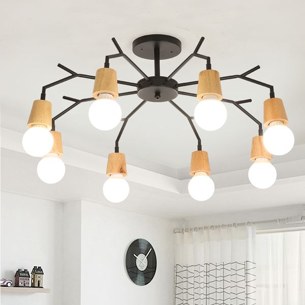 Grosshandel Holz Deckenleuchte Kinderzimmer Licht Schlafzimmer Schwarz Eisen Deckenleuchten American Modern Led Lampe Wohnzimmer Innenbeleuchtung Von