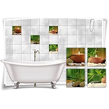 Medianlux Fliesenaufkleber Fliesenbild Aufkleber Bambus Kerzen Steine Spa Wellness Dekoration Bad Fliesen Deko Badezimmer 20x25cm