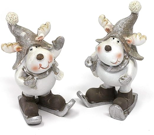 Tempelwelt 2x Deko Figur Rentier Wichtel Mit Ski Im Set Je 7 5 Cm Polystein Grau Weiss Dekofigur Winter Weihnachten Kranzdeko Winterdeko Advent