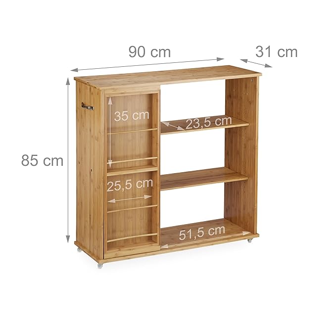 Nischenregal Bambus Beistelltisch Rollen Rollwagen