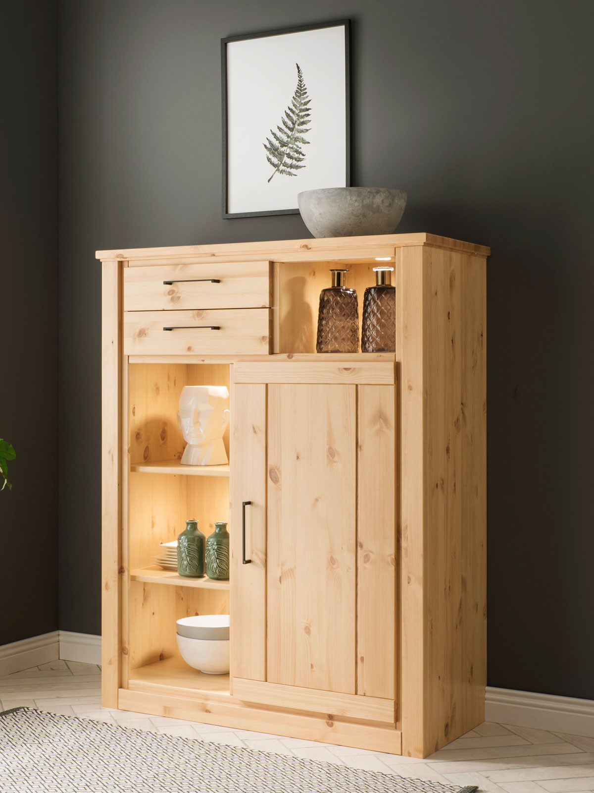 Highboard Hoch Anrichte Verona 2 Turen 2 Schubkasten 1 Regal 1 Fach Pinie Nordica Lackiert