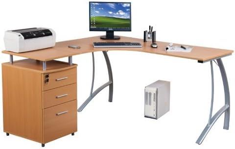 Hjh Office Computer Eck Schreibtisch Castor Buche Silber Mit Standcontainer 151 143 X 76 X 55 Cm Drucker Podest Robust Gefertigt Einfacher Aufbau