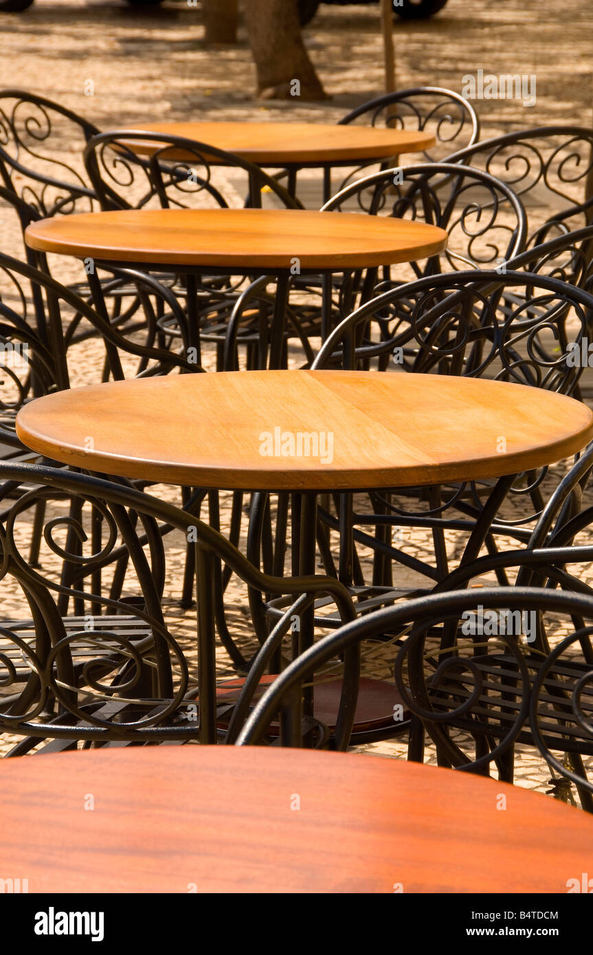 Ausserhalb Gekront Cafe Mit Leeren Aus Holz Runde Tische Und